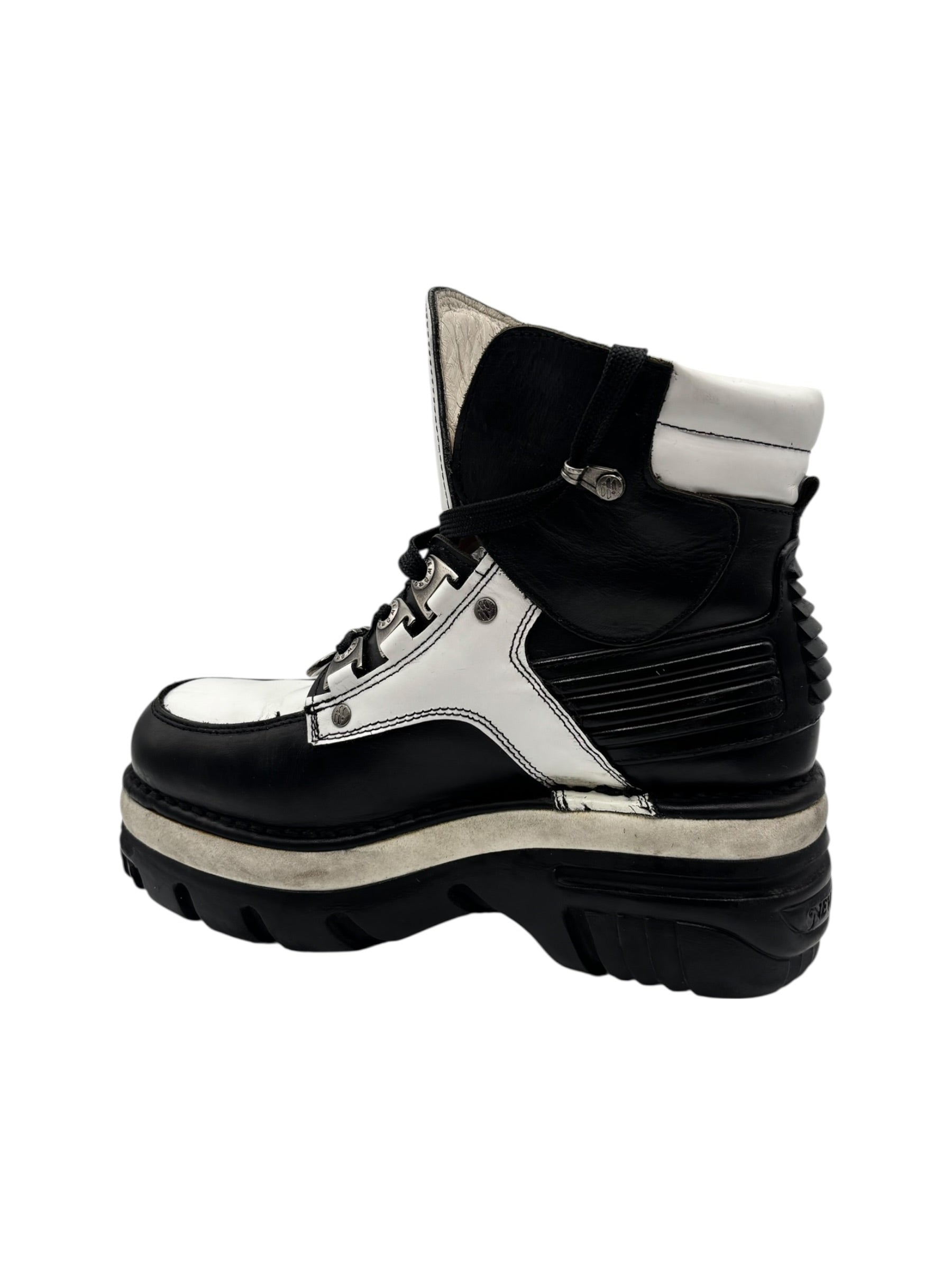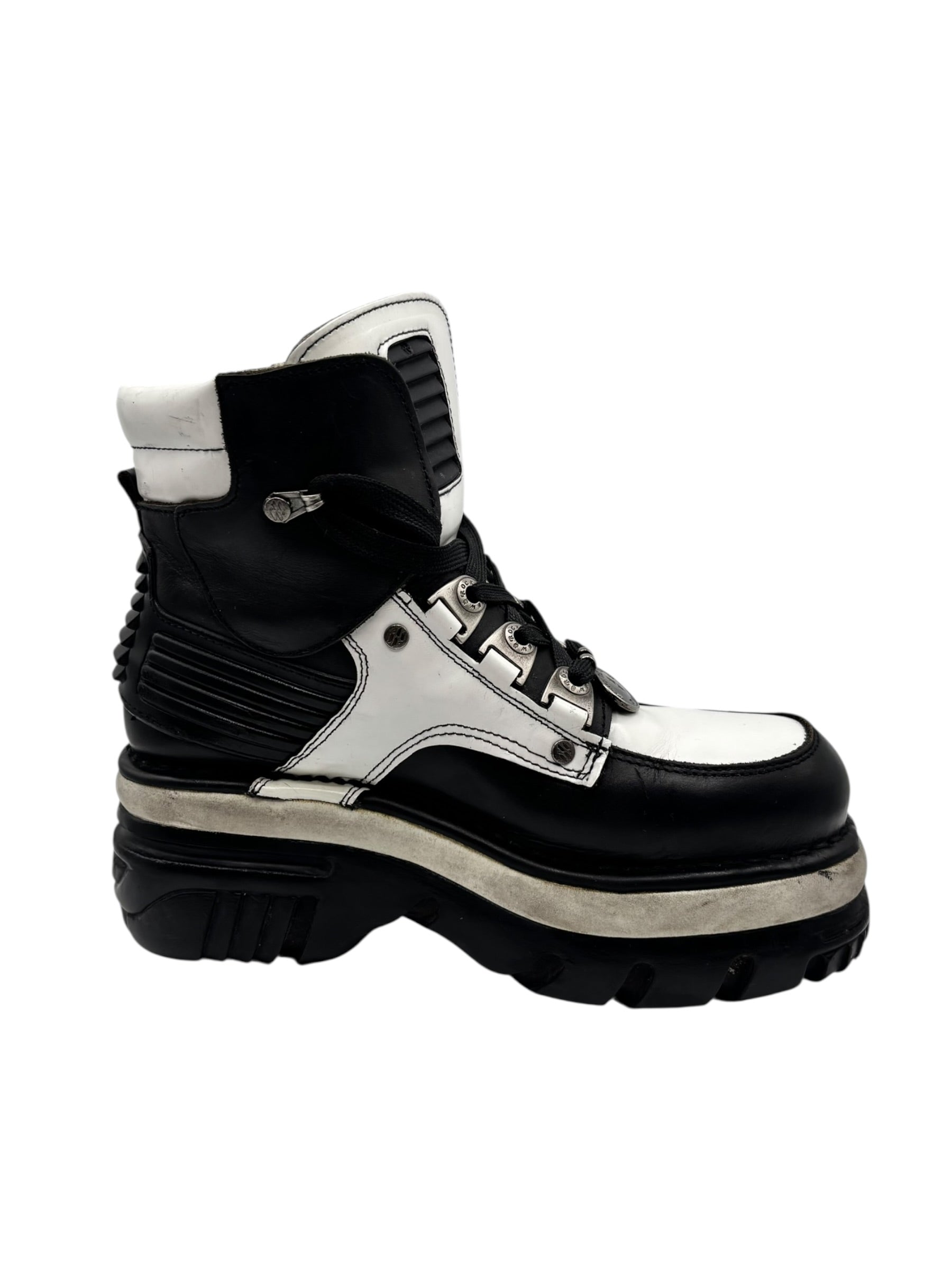 Made out of really high quality cow leather, 100% authentic. Made in the 90s. The condition of the boots is great, minimal signs of wear, no major flaws. Everything seen in the photos.