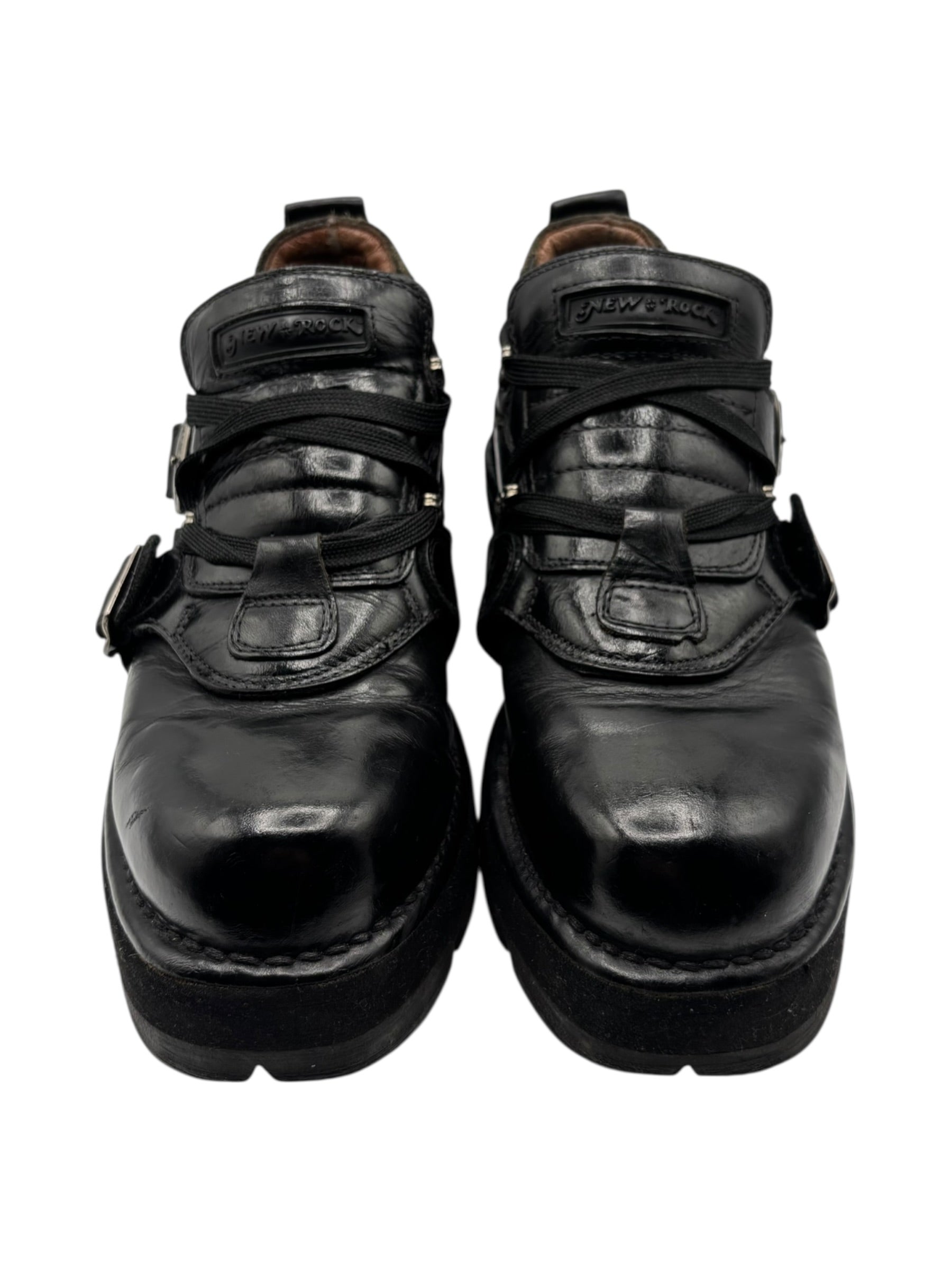 Vintage New Rock buckled raised-heel leather boots