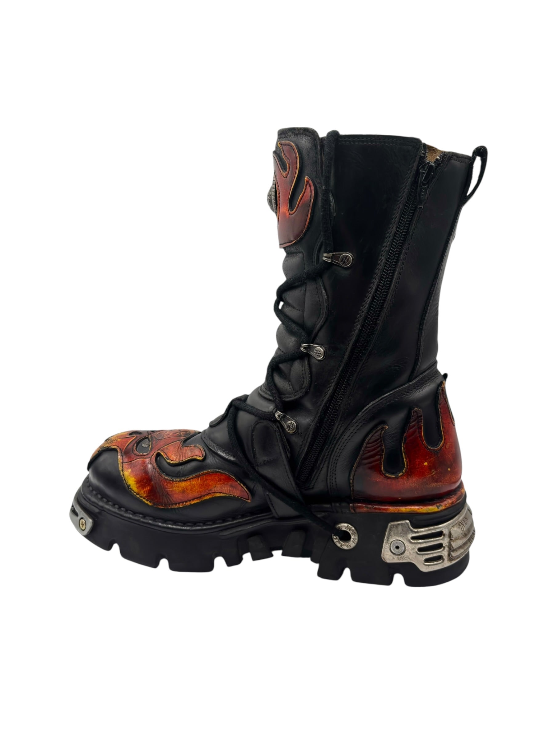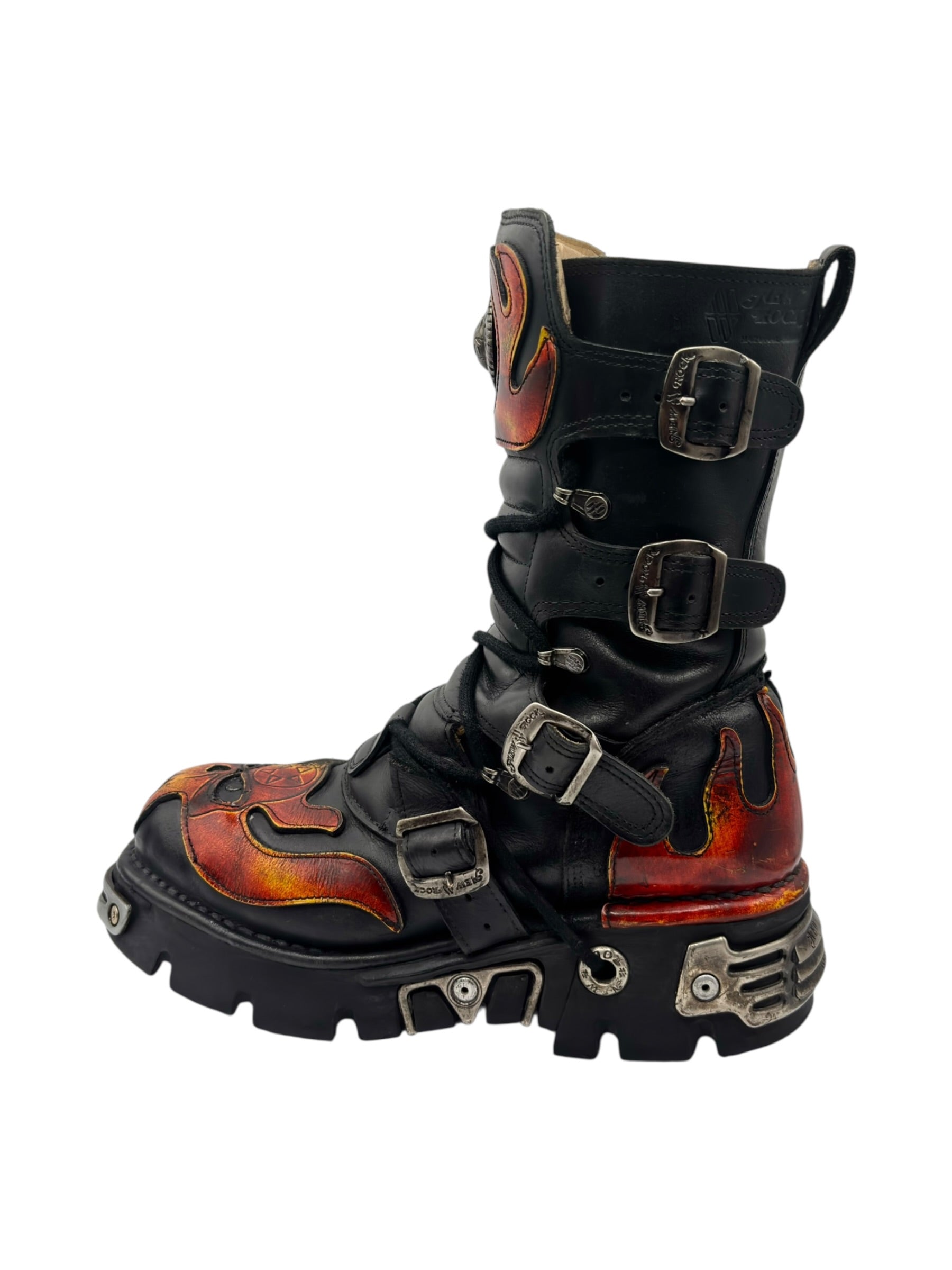 Vintage New Rock orange flame mid-calf reactor leather boots
